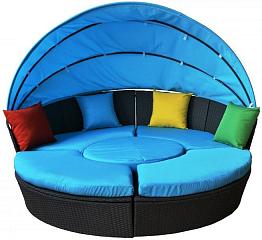 Круглая пляжная кровать-трансформер из искусственного ротанга. Каркас изделий изготовлен из высокопрочного алюминия, что гарантирует продолжительный срок службы. Комплектуется подушками со съемными чехлами для максимально удобного очистки от загрязнений. Ручное плетение делает неповторимым и уникальным каждое изделие.