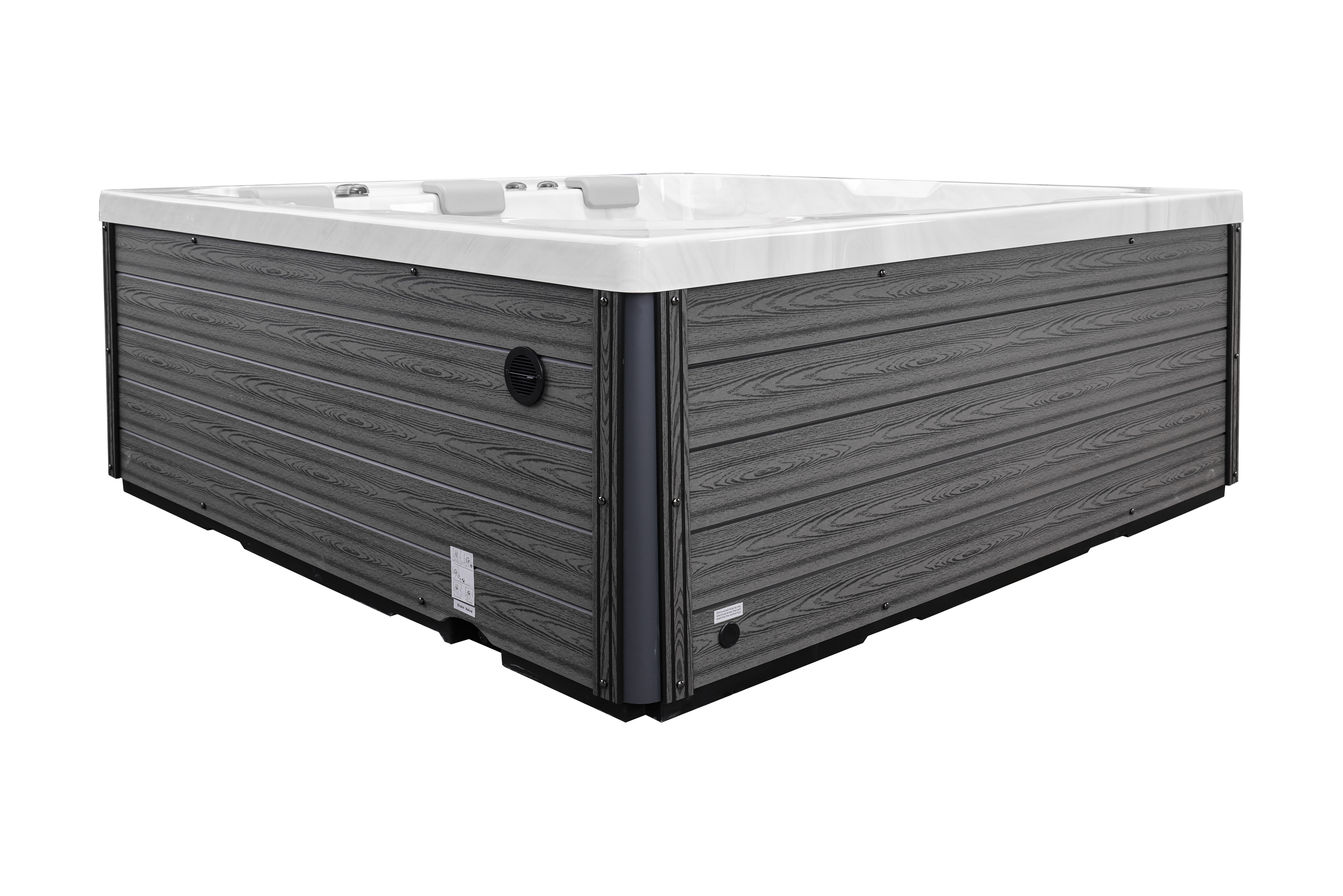 Прочная опорная рама из гальванизированной стали гарантирует устойчивость и долговечность конструкции. Элегантная обшивка из ДПК-панелей не только придает спа-бассейну современный вид, но и устойчива к влаге, перепадам температур и ультрафиолету.